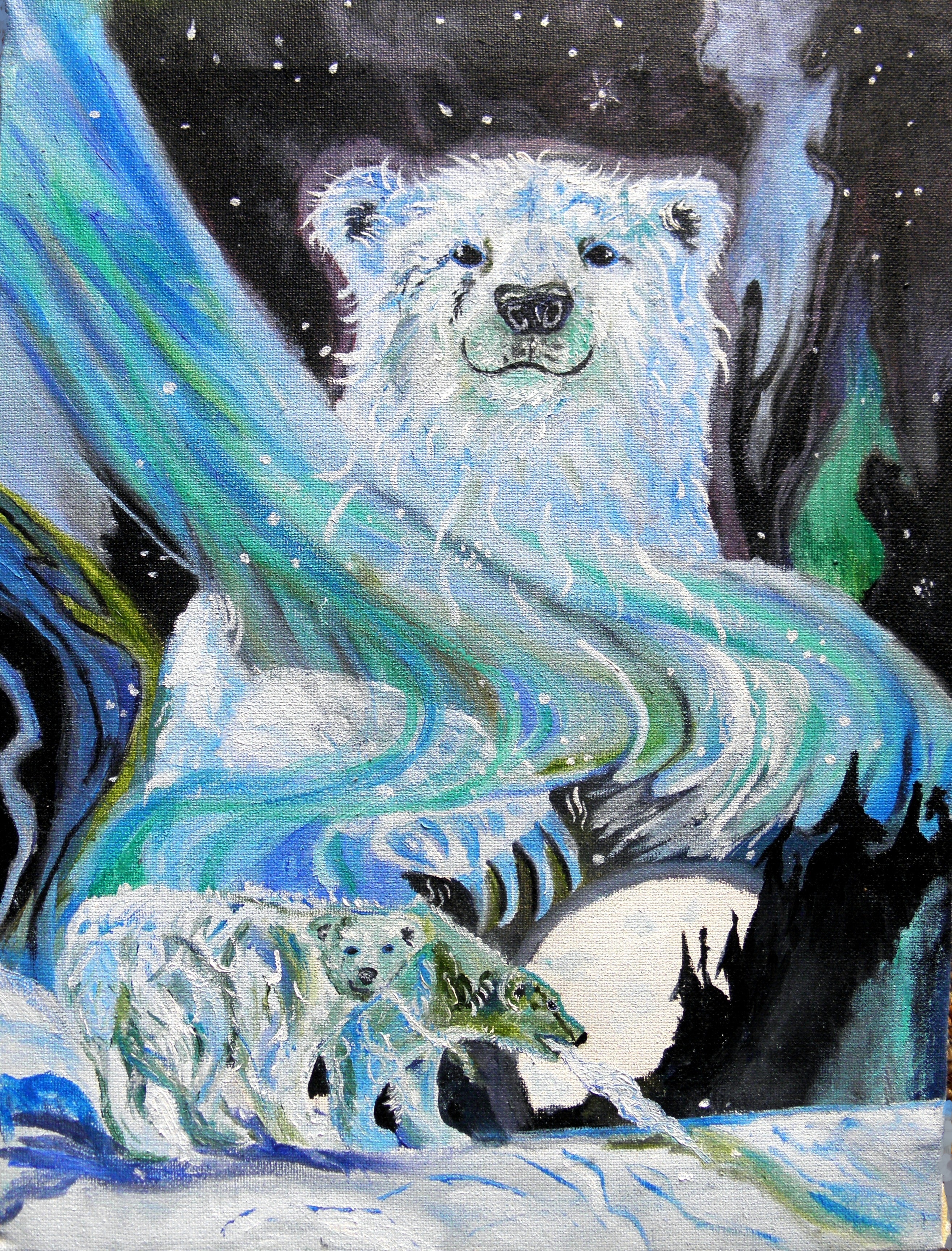 На картине изображен повелитель арктической пустыни - белый медведь, сильный, уверенный в себе.
