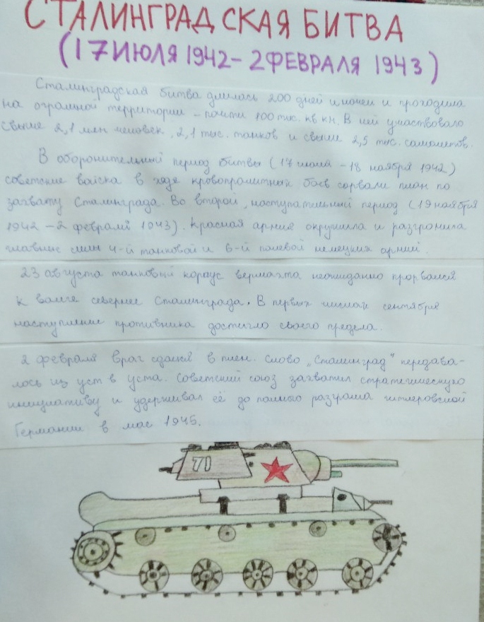 Проект участника Совета музея школы к стендовому докладу "75-летие Сталинградской битвы"