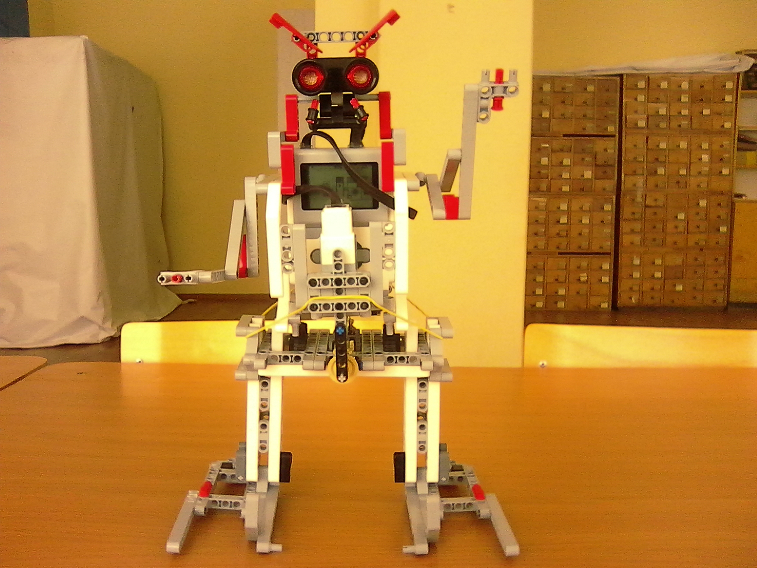 Функция: передвигается оригинальным образом , определяет дистанцию , принимает решение . Конструкция, технология, материалы: робот создан из наборов LEGO Mindstorms Education Ev3.
