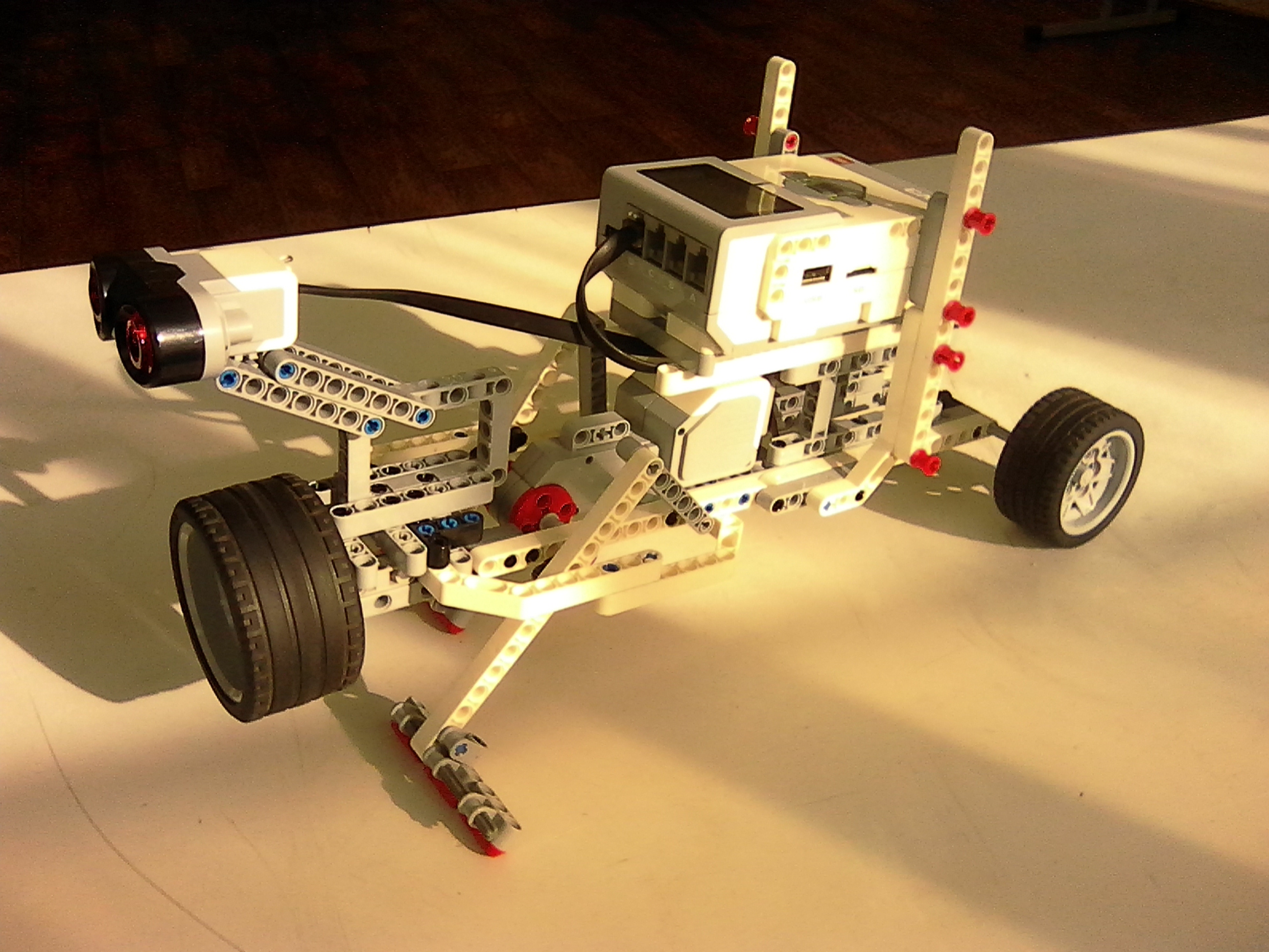 Функция: передвигается оригинальным образом , определяет дистанцию , принимает решение (вперед или назад). Конструкция, технология, материалы: робот создан из наборов LEGO Mindstorms Education Ev3.