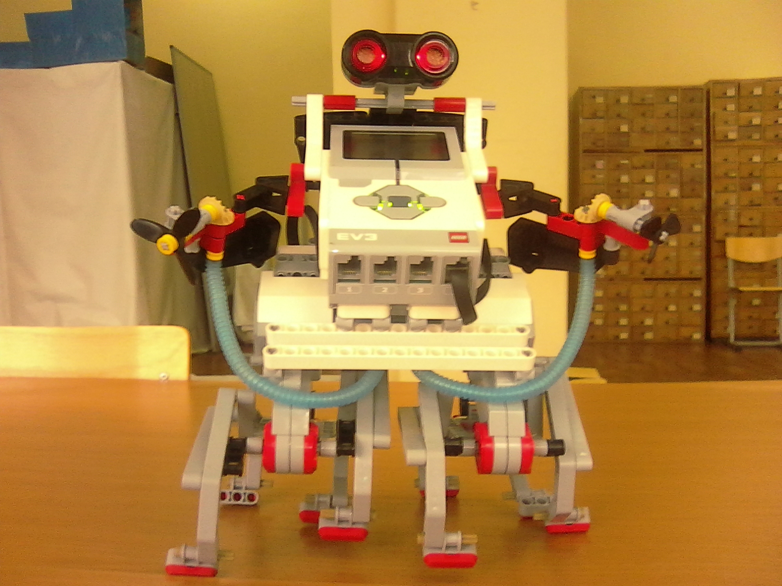 Функция: передвигается оригинальным образом , определяет дистанцию , принимает решение (вперед или назад). Конструкция, технология, материалы: робот создан из наборов LEGO Mindstorms Education Ev3
