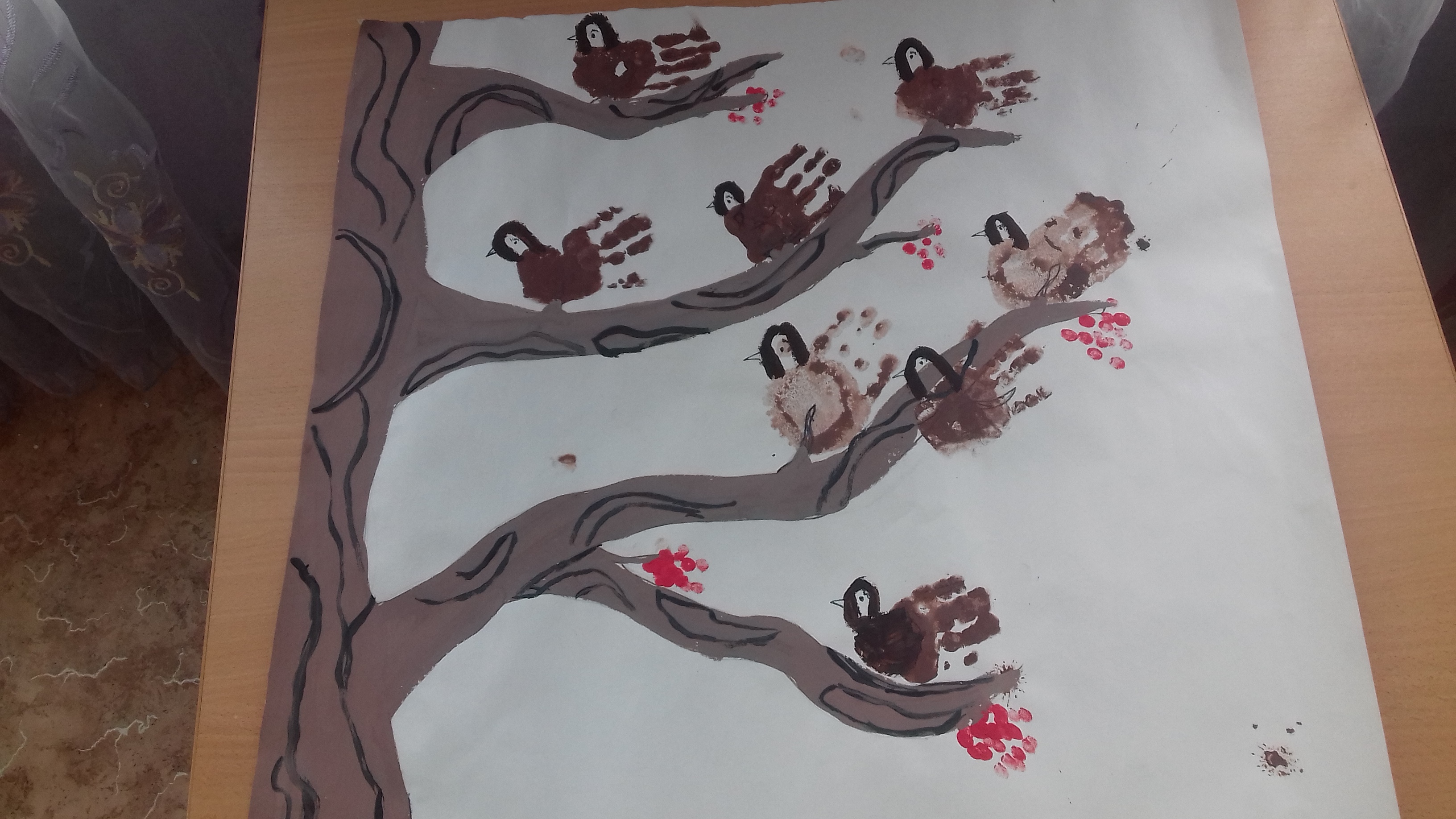 Рисование "Воробьи на ветке"