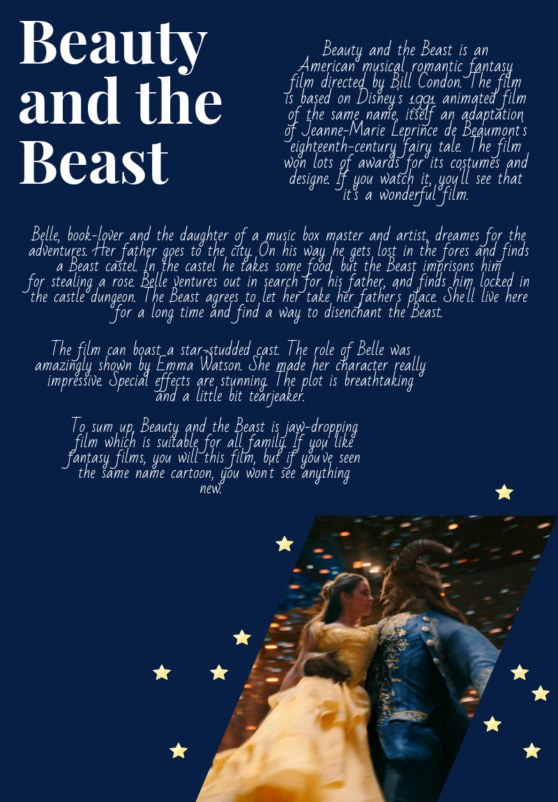 Плакат - отзыв о фильме "Красавица и чудовище"