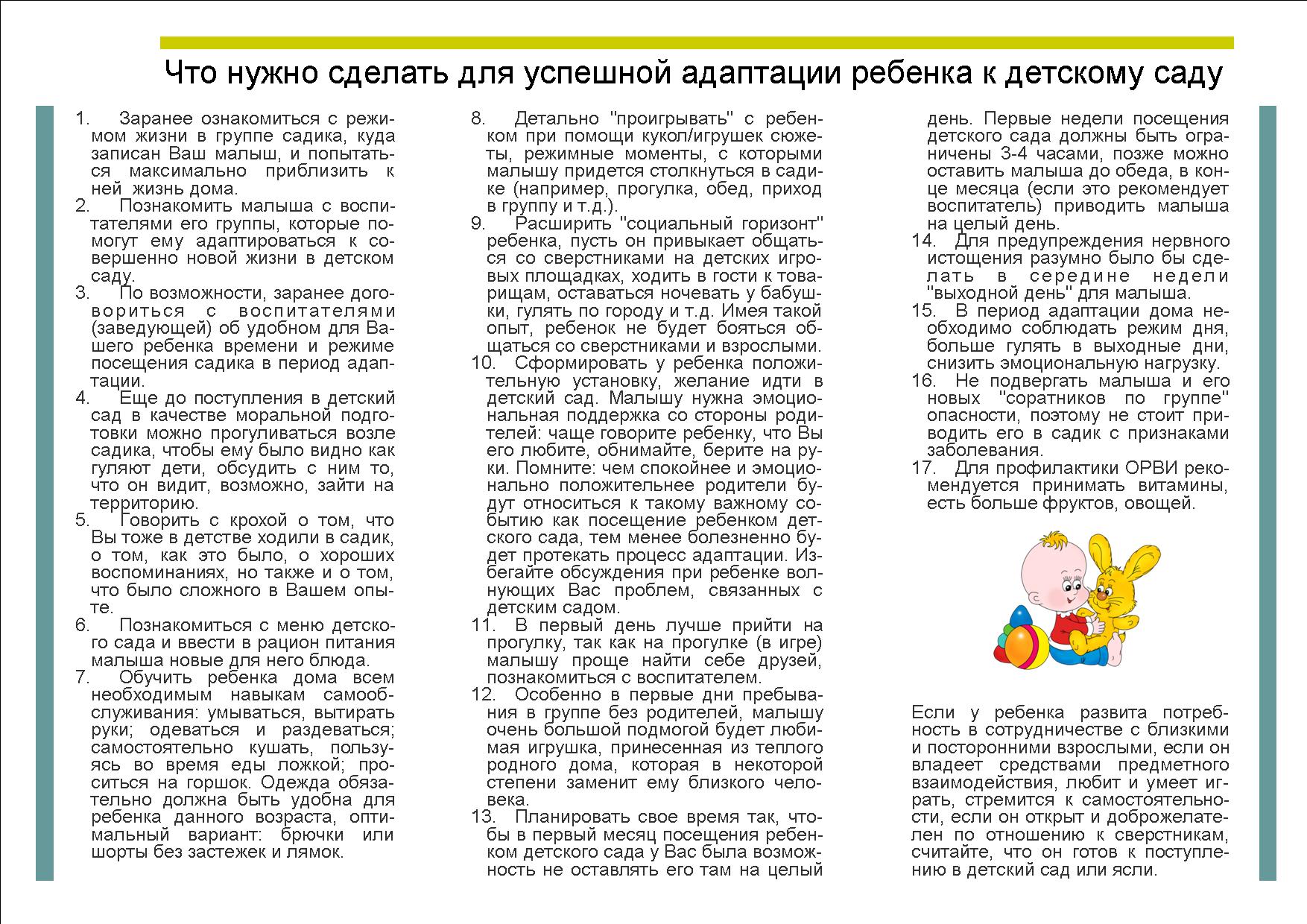 Адаптация ребенка к саду — это привыкание или приспособление детского организма к новой обстановке. Для малыша детский сад предстает как неизвестное пространство, с пугающими новыми отношениями и окружением. Кроха нуждается во времени, чтобы адаптироваться к новой жизни. Адаптация ребенка к саду требует повышенных затрат психической энергии, напряжения, а также физических сил организма. Существует три фазы адаптации: