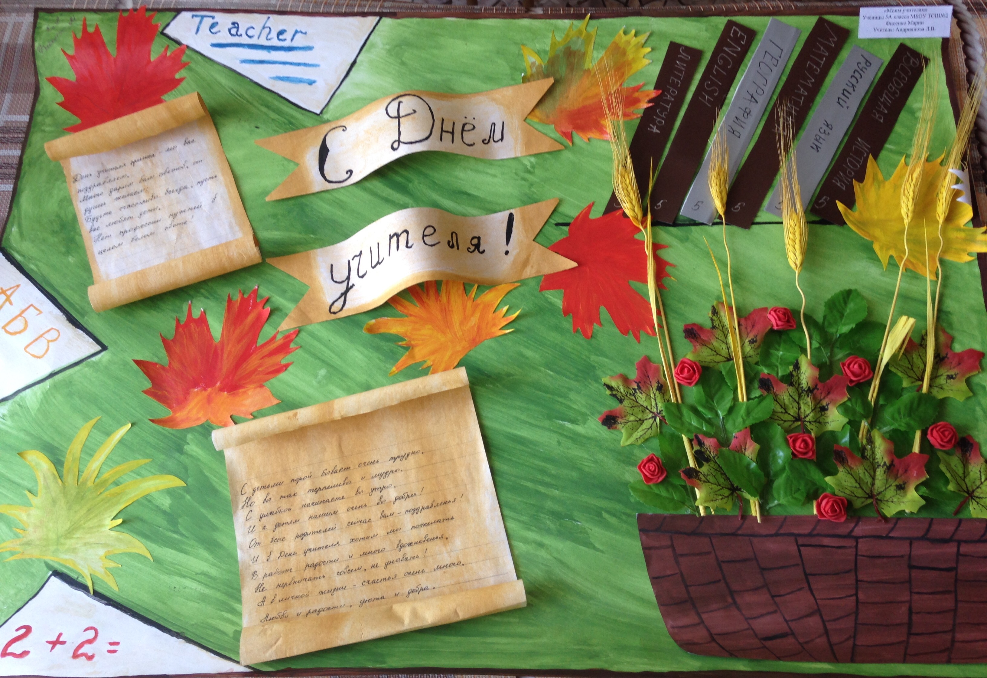 Данная работа выполнена ученицей 5 класса. Плакат предназначен для украшения комнаты учителей в школе.