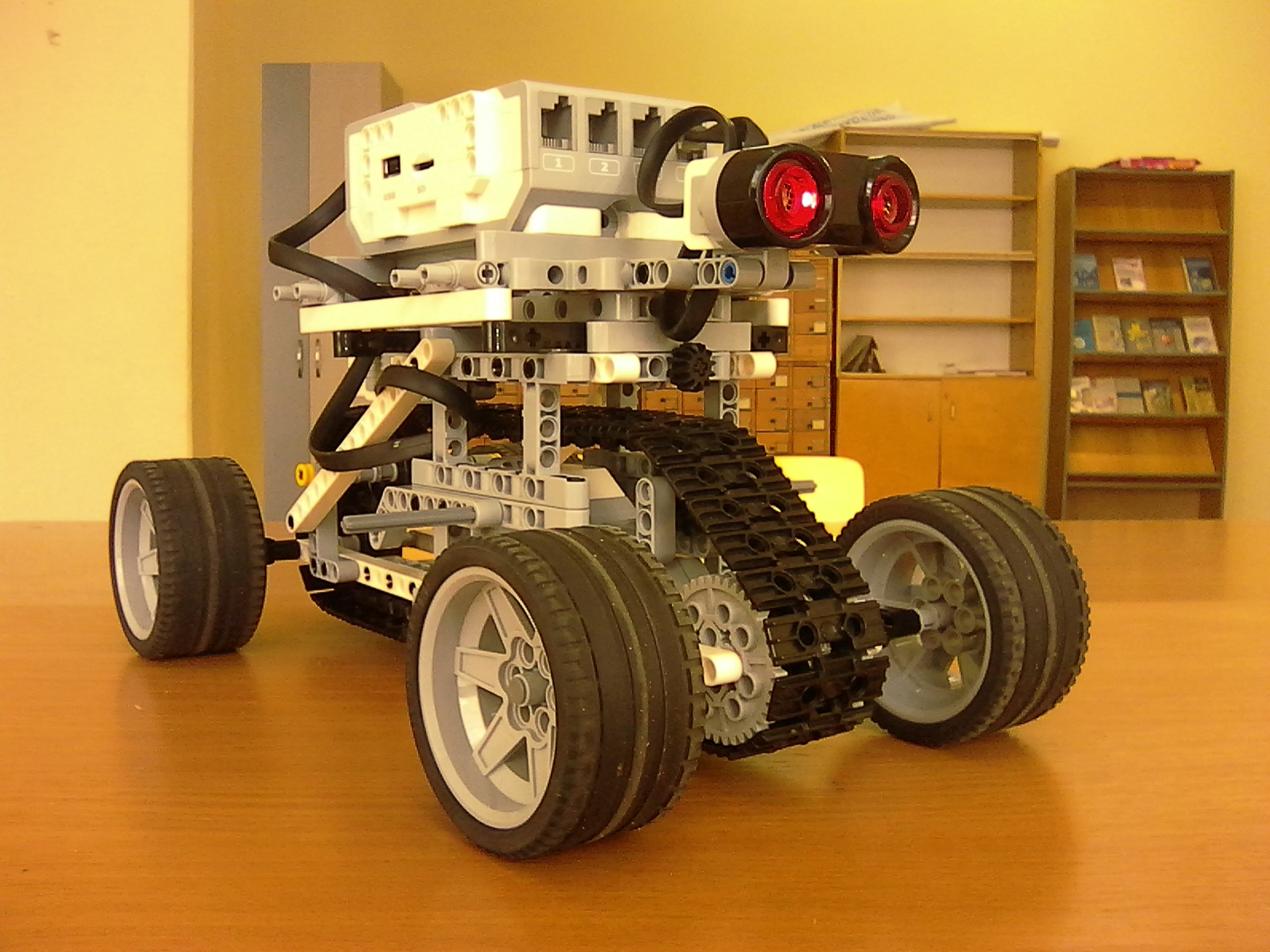 Функция: передвижение на колесах, издает звуки. Конструкция, технология, материалы: робот создан из наборов LEGO Mindstorms Education Ev3.