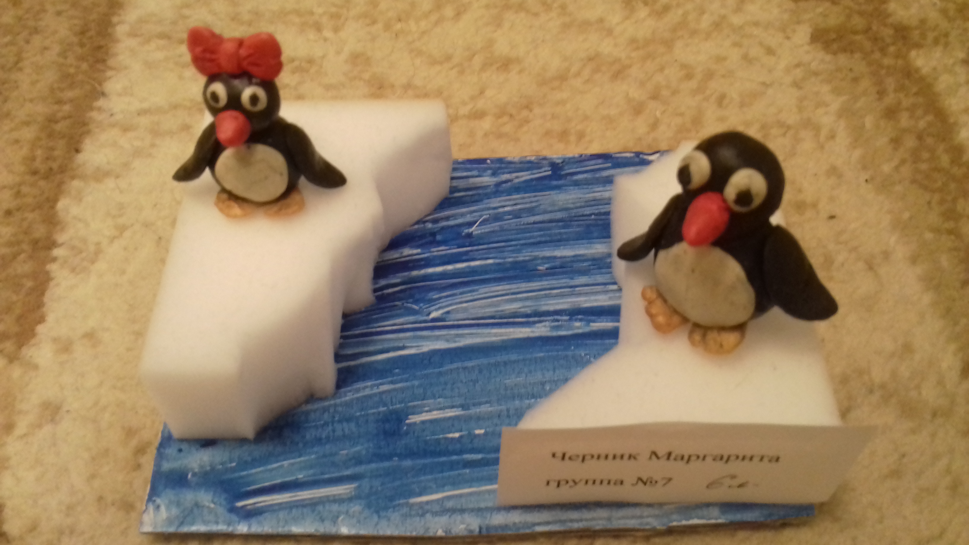 Аппликация "Пингвины на льдине"