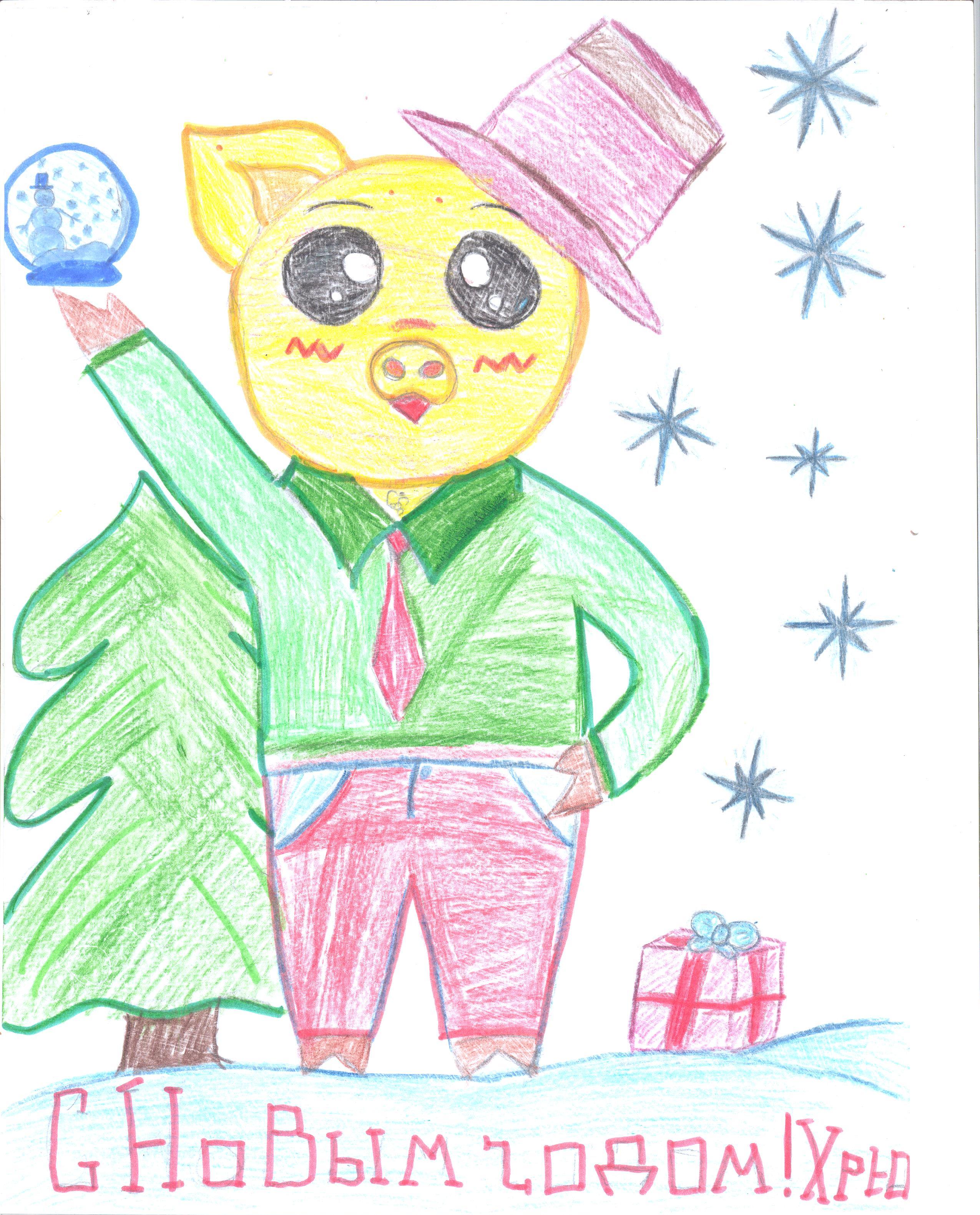 Проект выполненен цветными карандашами. Ребёнок выразил своё стремление встретить новый год, поздравив окружающих. Чем больше счастливых людей рядом, тем будет лучше всем!
