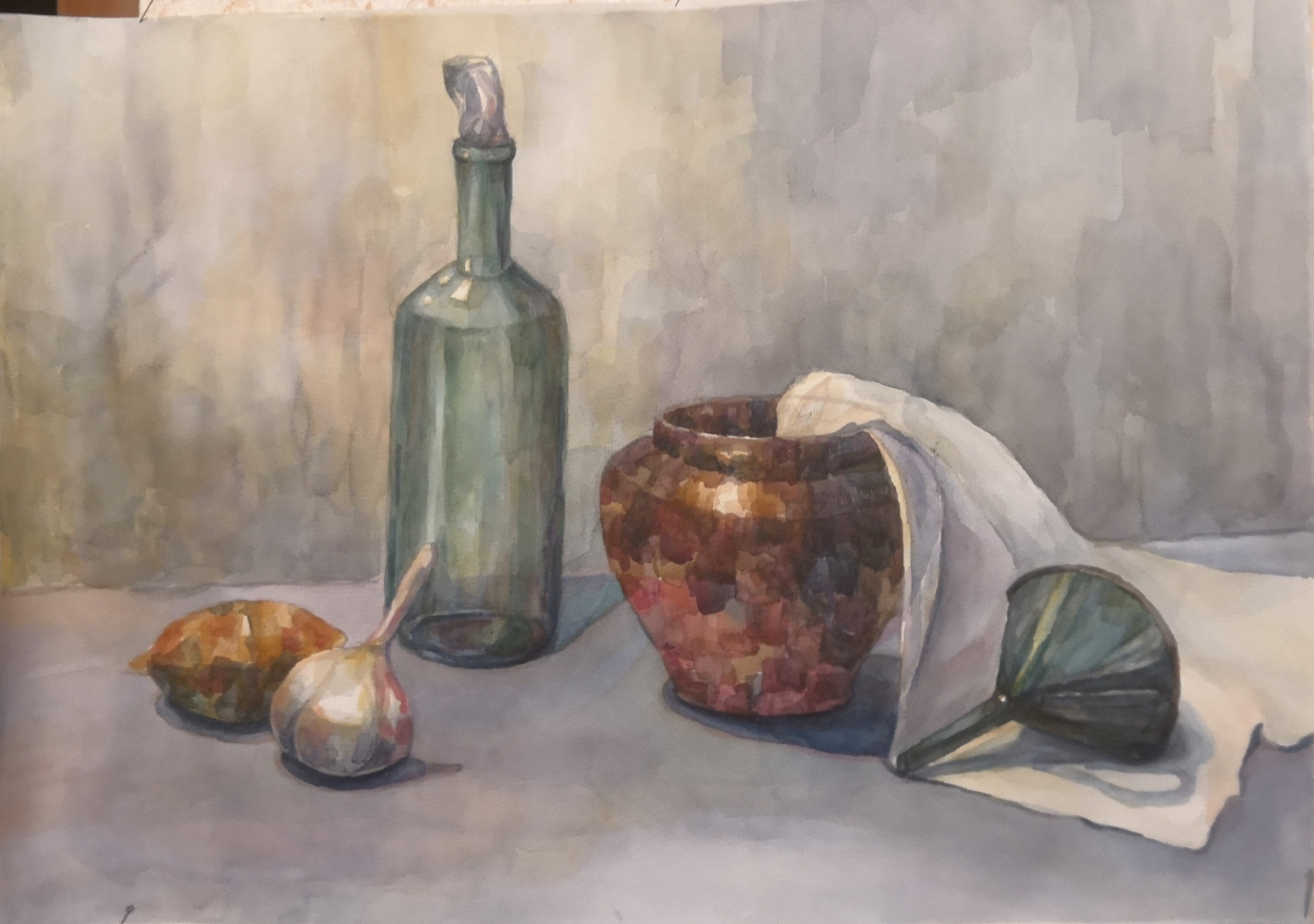 Рисунок "Акварельный натюрморт с бытовыми предметами"