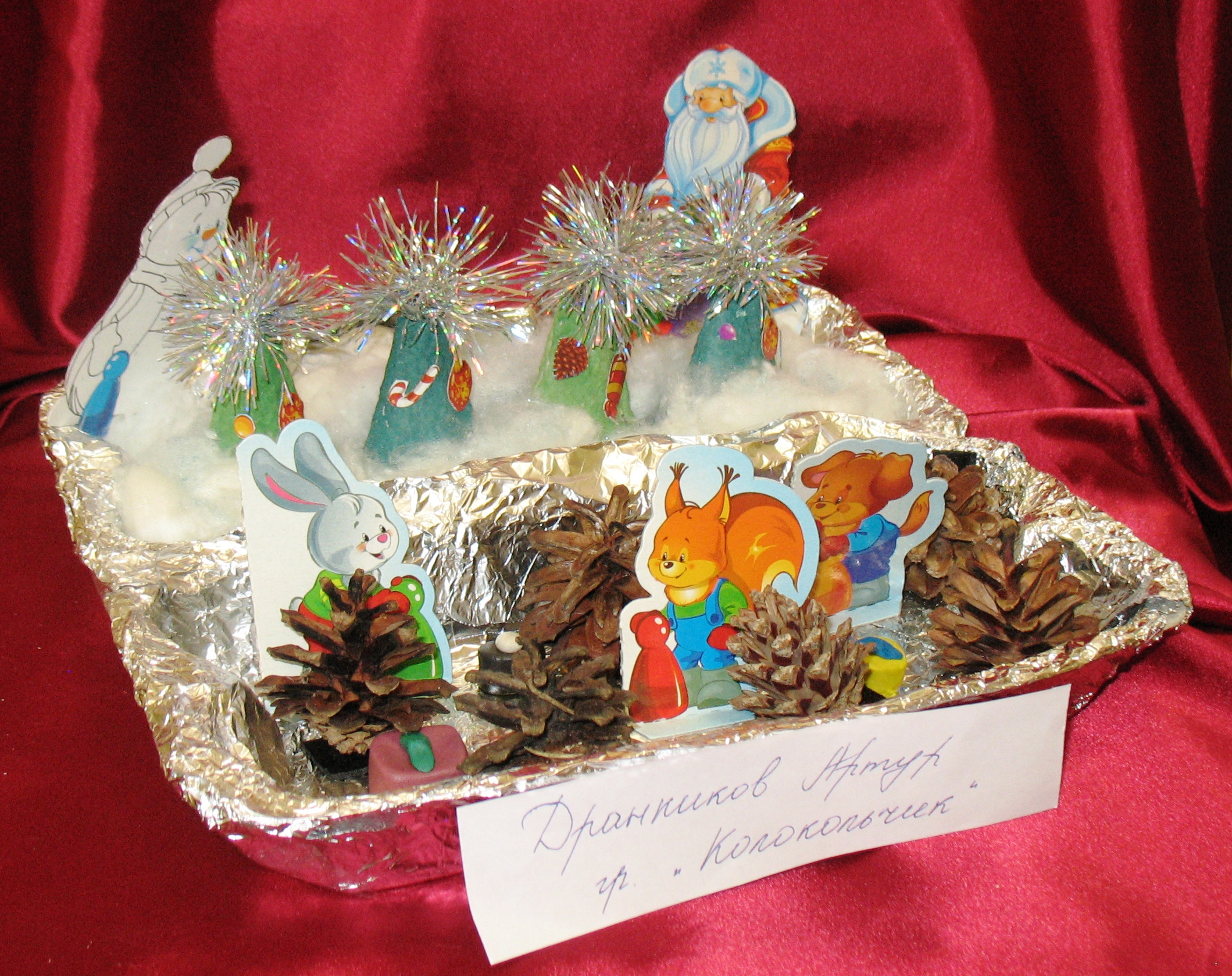 В проекте "Новогодние поделки" представлены объемные композиции с новогодней тематикой, выполненные воспитанниками вместе с родителями.