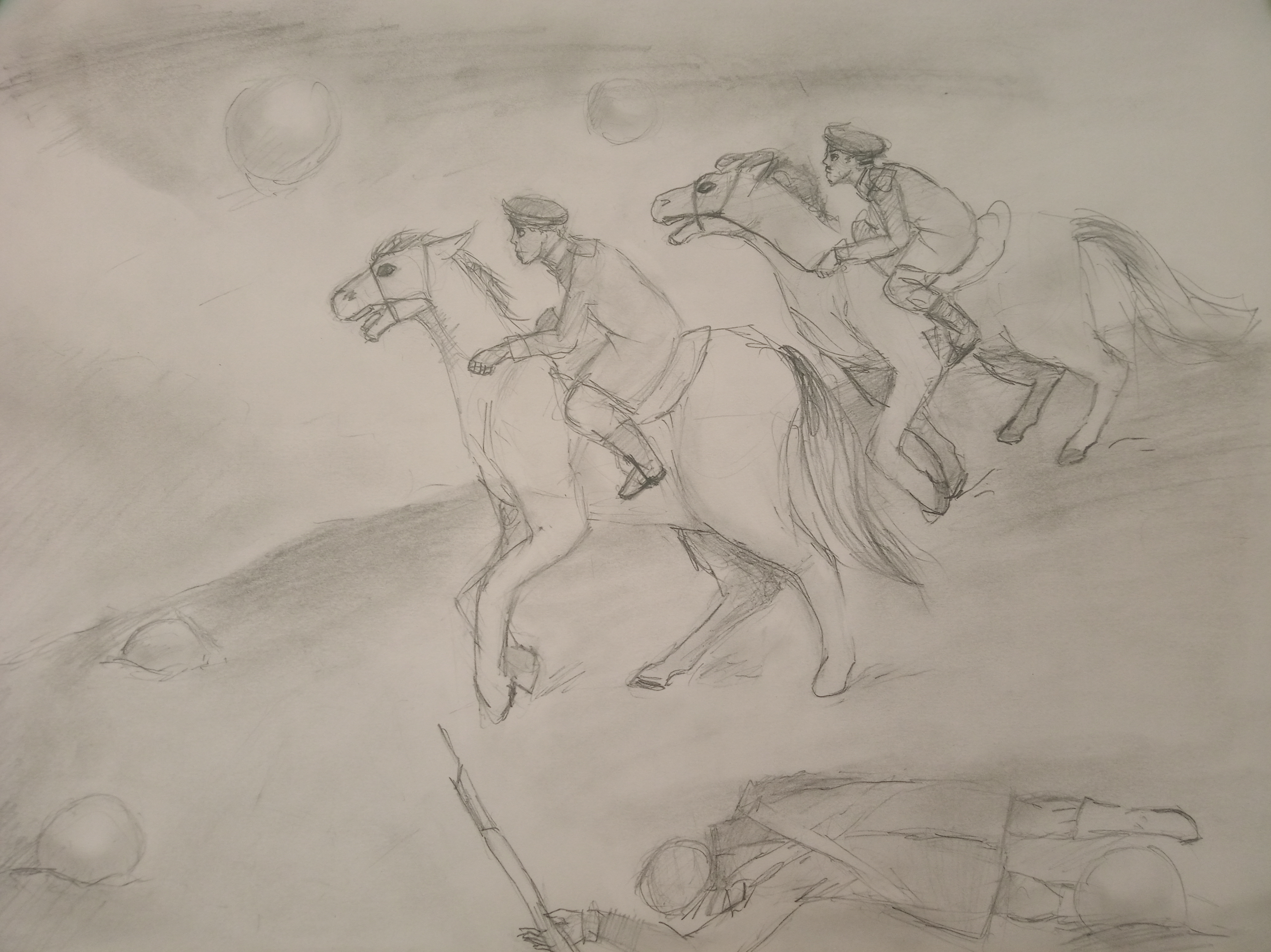 Рисунок простым карандашом на тему: "Нас водила молодость в сабельный поход..."