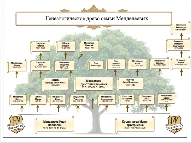 Генеалогическое древо семьи Менделеевых, составленное Зимаевой Анной по результатам проекта