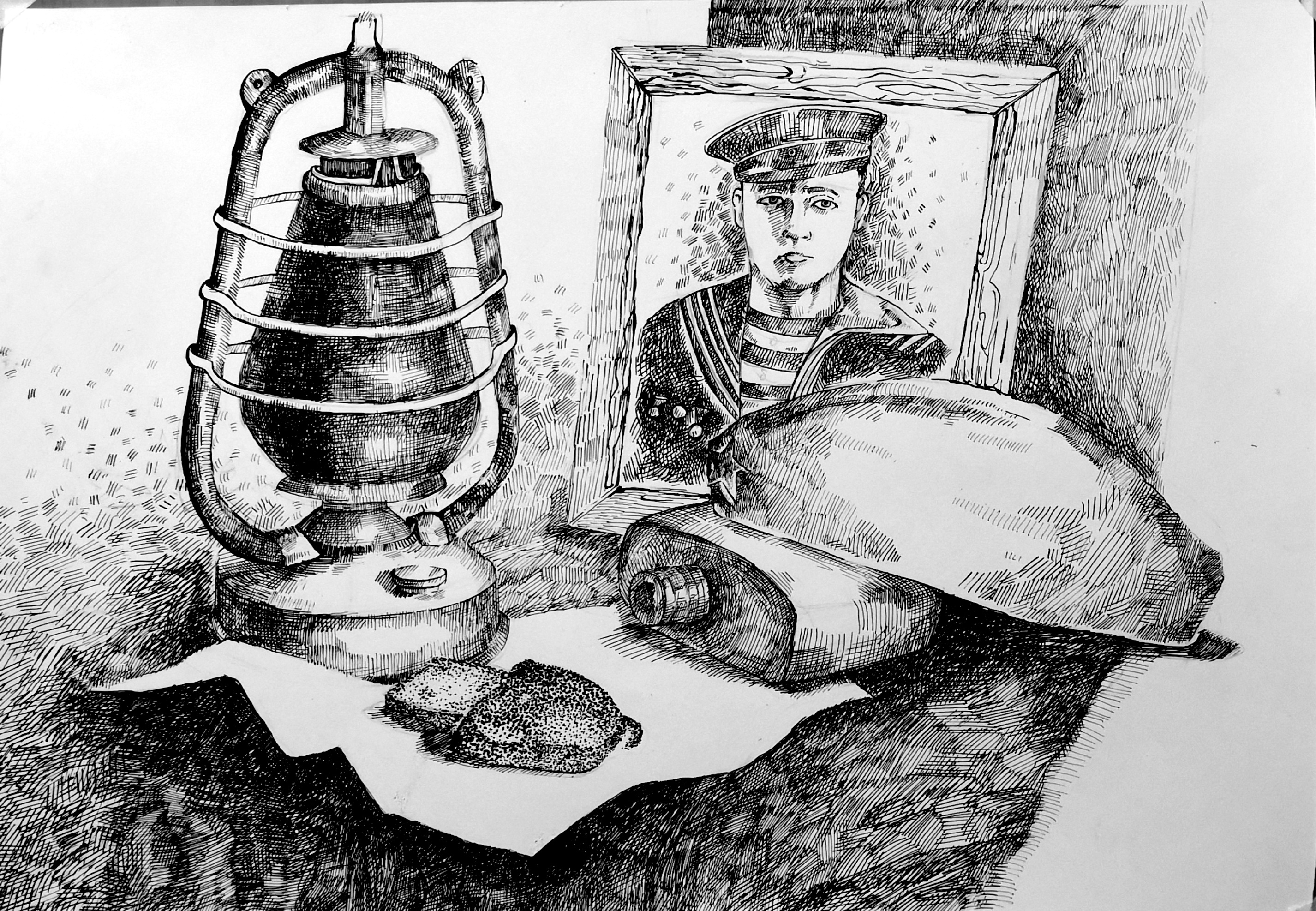 Рисунок "Натюрморт посвящен Великой Отечественной войне 1941-1945 года"