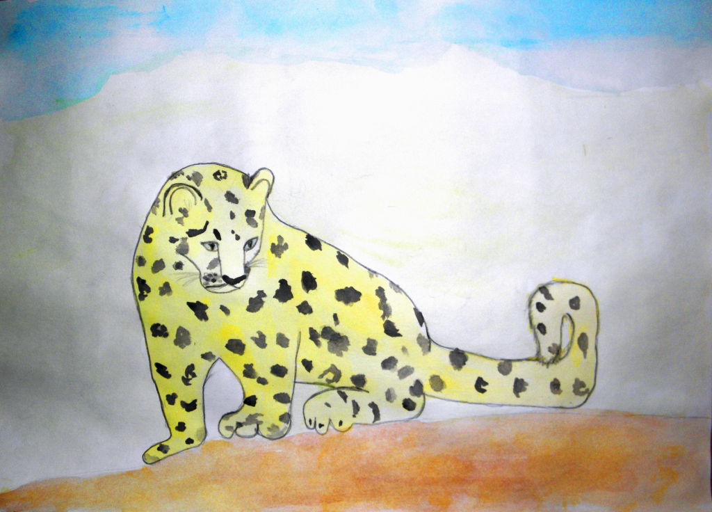 Я очень люблю кошек и часто их рисую. Я узнала, что этот котёнок – малыш снежного барса - ирбиса.Ещё его называют снежным котом. Красивый, шкурка в пятнышках, очень длинный хвост. Он вырастет и станет очень большим, настоящим снежным леопардом. Будет жить высоко в горах, где-нибудь в пещере, охотиться, бродить по снегу зимой. Их осталось очень мало. Поэтому они в Красной книге и под охраной.