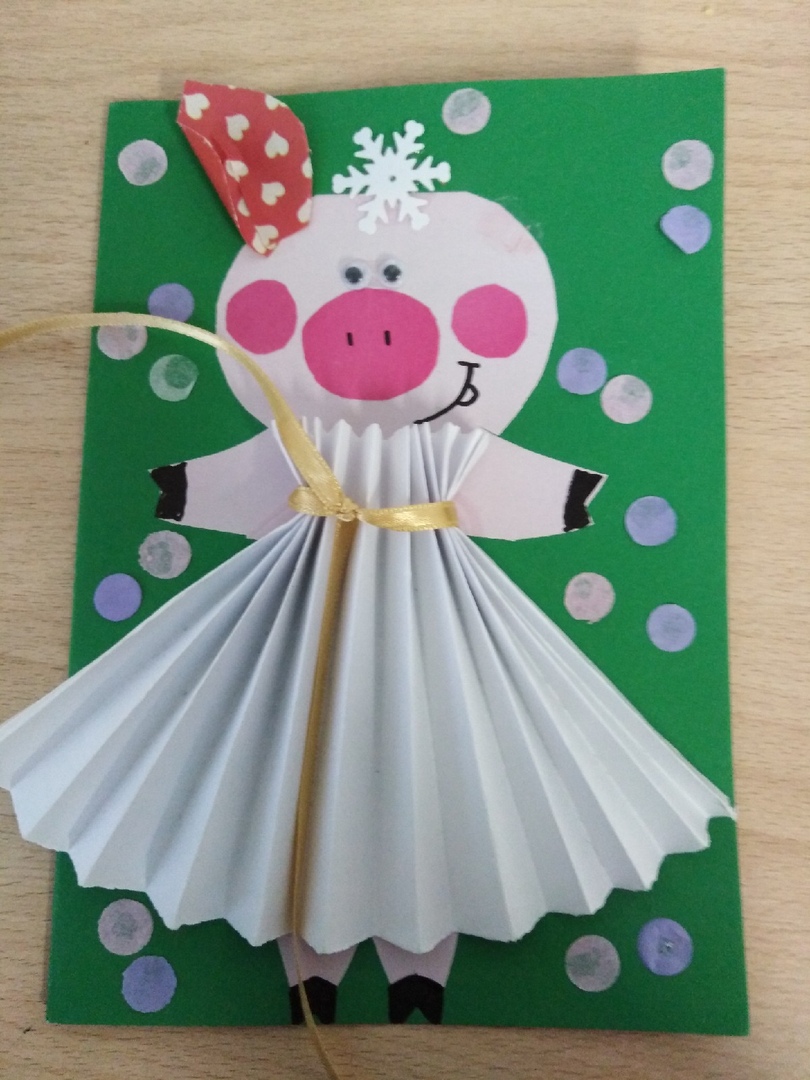 Творческая работа Новогодняя открытка Свинка