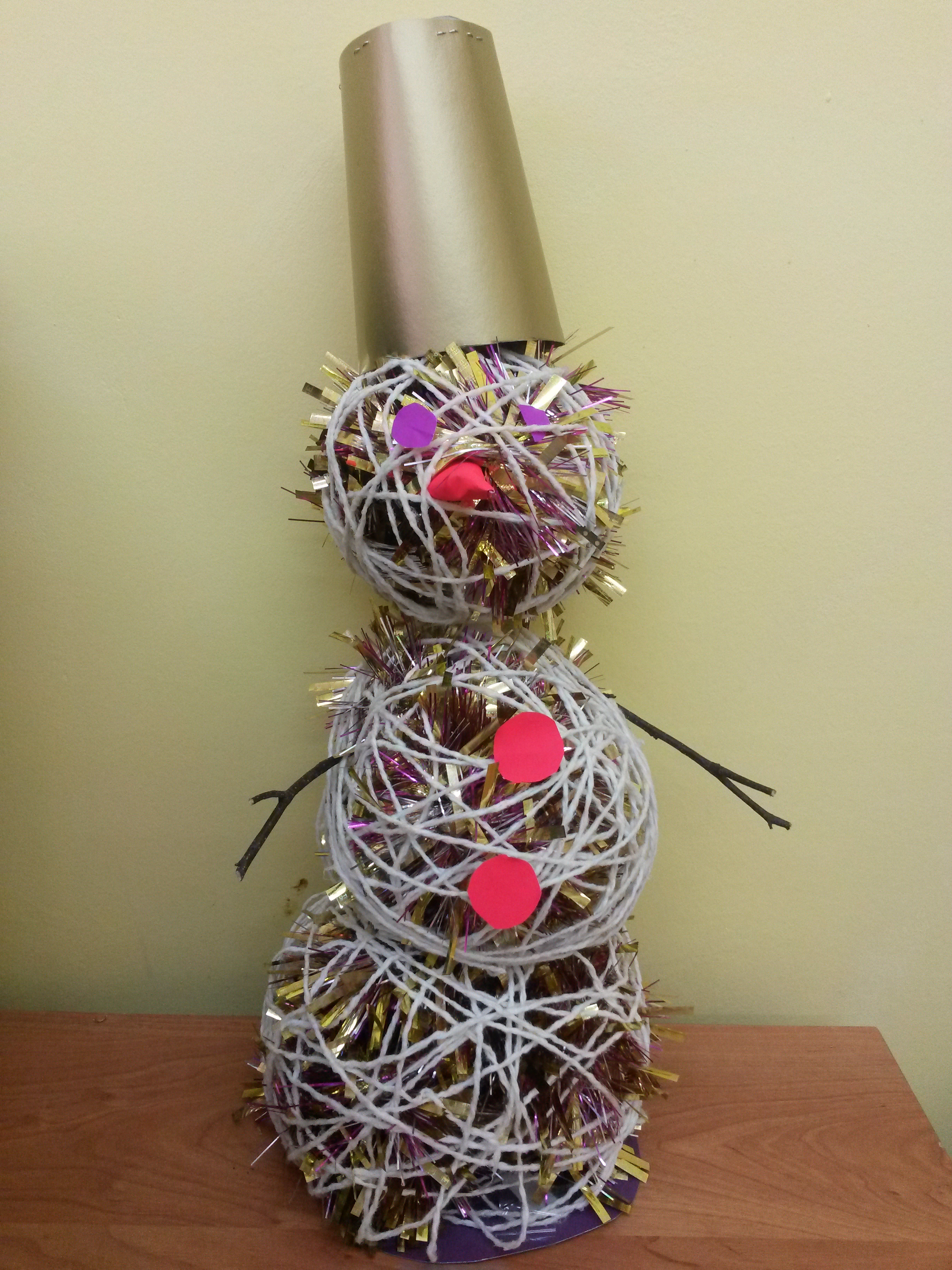 поделка из ниток, мишуры и бумаги