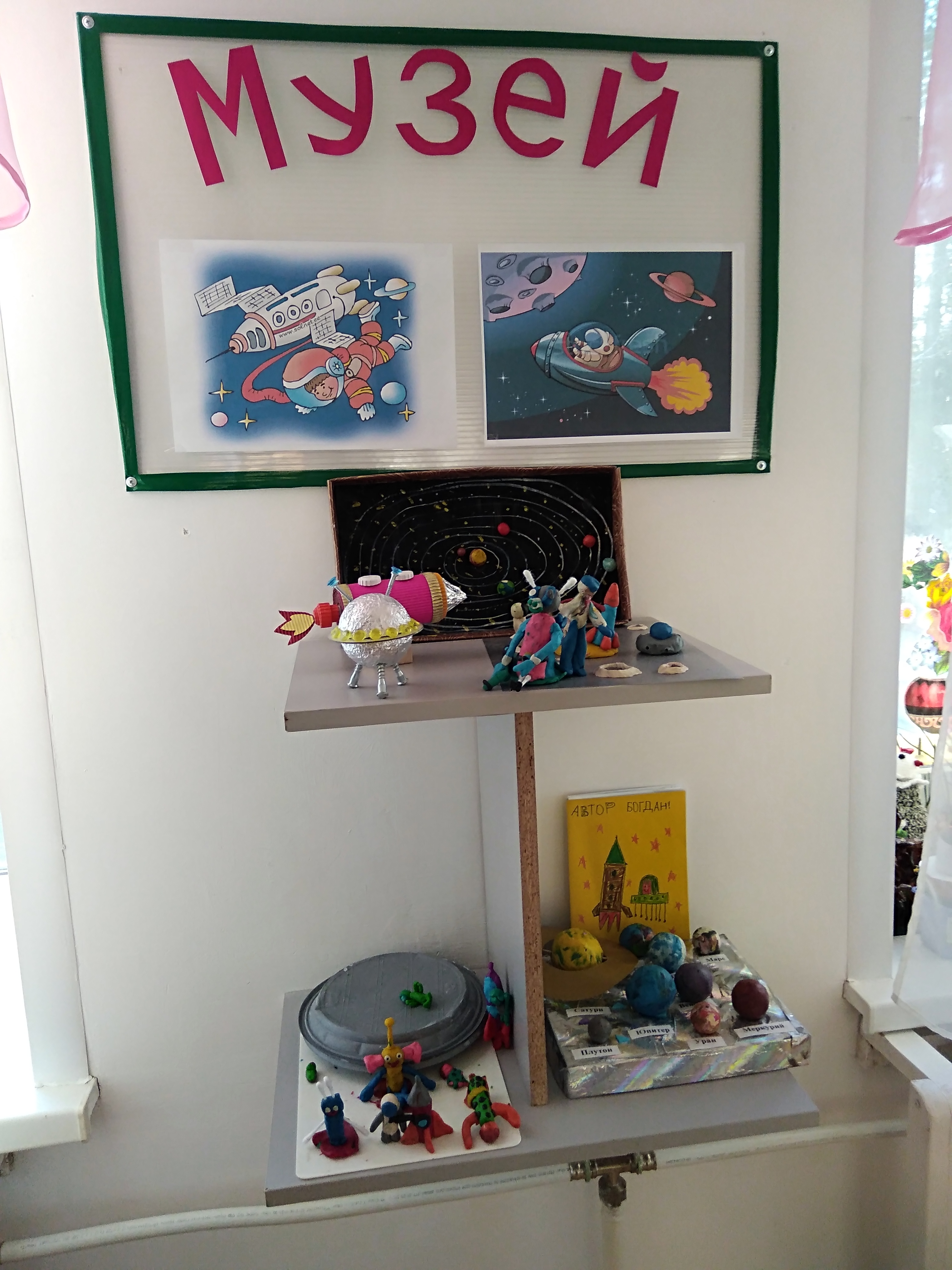 1. Поделки детей из пластилина: космонавты, планеты, инопланетяне. 2. Поделки из бросового материла "Ракета", "НЛО". 3. Картинки на тему "Космос" 4. Рисунки на тему "Космос" 5. Книжка-малышка "Буду космонавтом"