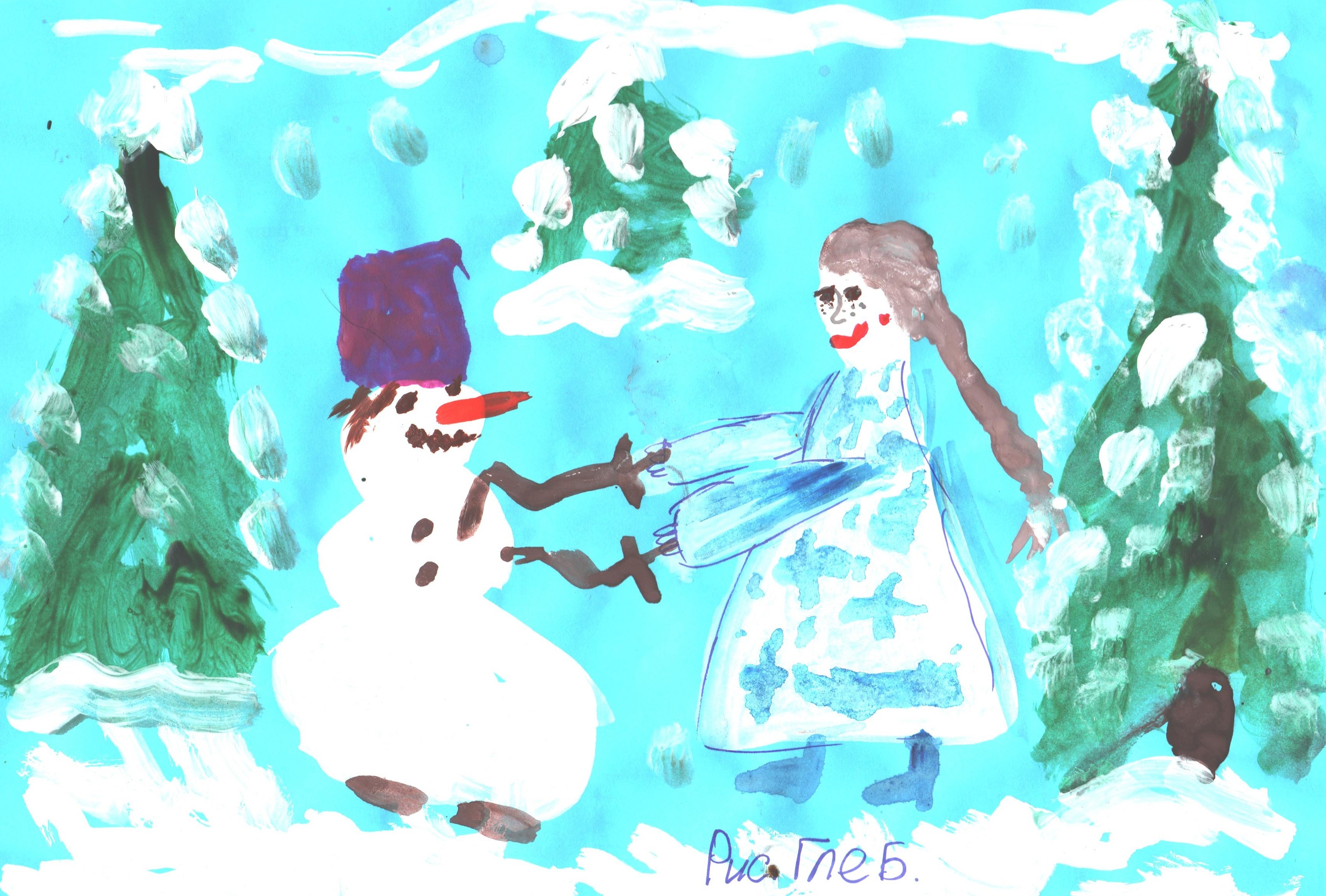 рисунок "Веселый снеговик"