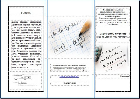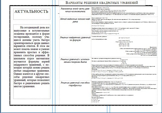буклет «Варианты решения квадратных уравнений»