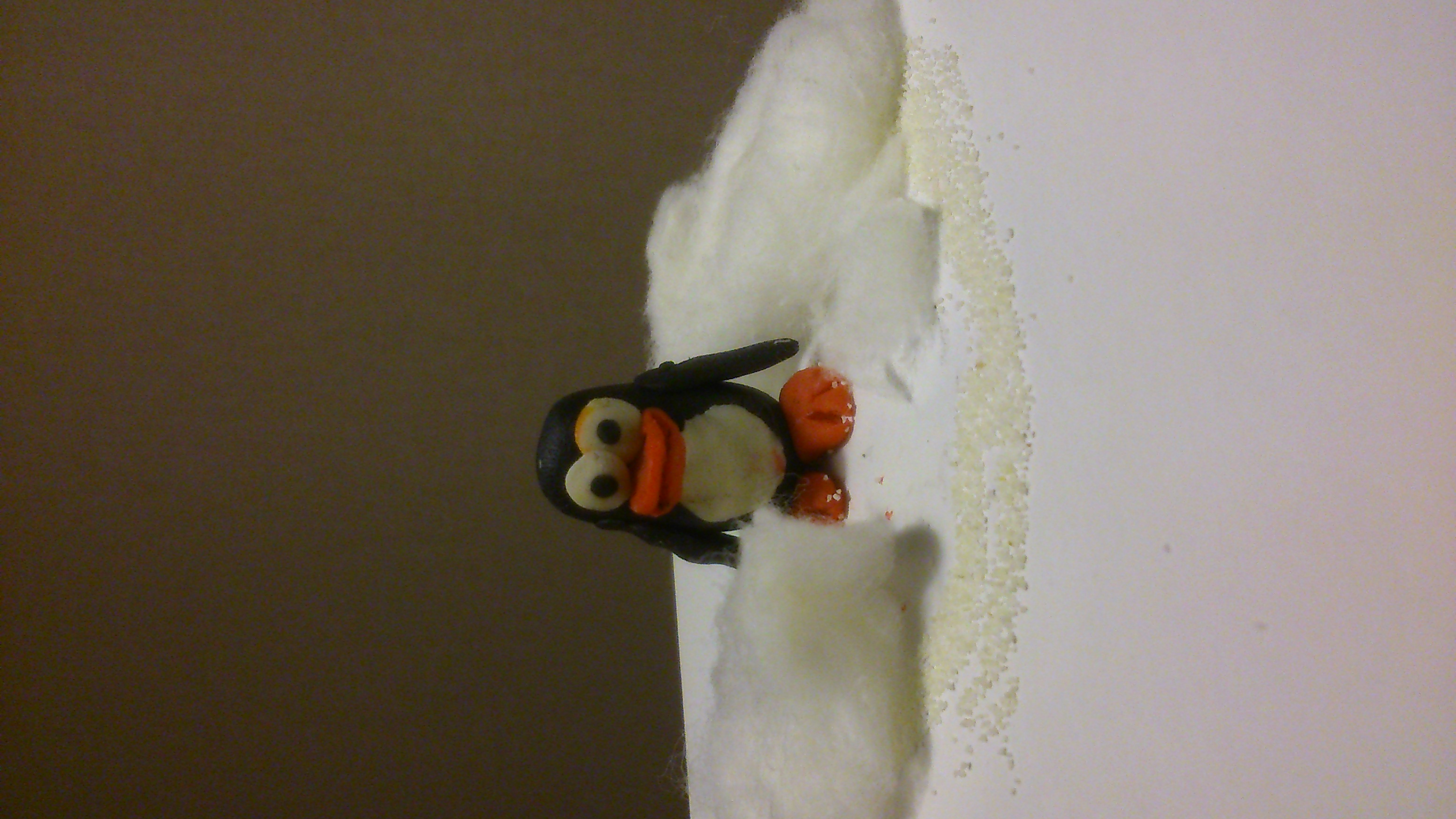 Поделка к занятию "Животные Антарктиды". Выполнена из пластилина. Изготовление снега из ваты и манки